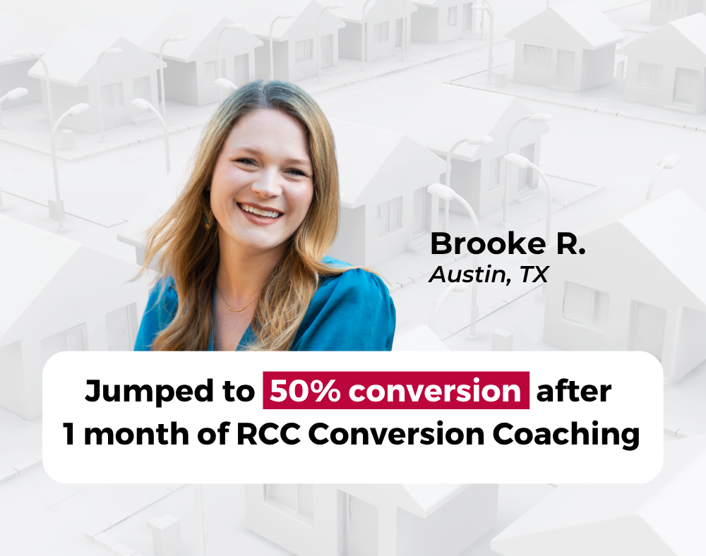- After accurately applying our techniques, guidance, systems within our conversion coaching, RCC clients, on average, perform at a 10%+ conversion.